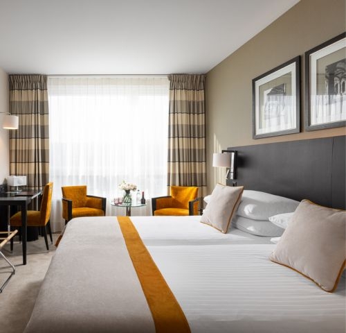 Design zu Diensten der GastfreundlichkeitAls 4-Sterne-Hotel in Genf bietet das Hotel Auteuil ein ultimatives Designerlebnis. Es befindet sich nur 15 Minuten vom Genfer Flughafen und nur wenige Gehminuten vom Hauptbahnhof entfernt. Hier sind Design keine Grenzen gesetzt – der Kamin und die warmen Farben bilden einen Kontrast zu den tiefen, metallischen Grautönen. Der Sitzbereich in der Lobby des Hotel Auteuil verfügt über eine Dauerausstellung einzigartiger Original-Fotografien aus den 1960ern. Von Sophia Loren bis Sean Connery sind die größten Stars der Ära zu sehen, wie sie das Rollfeld des Genfer Flughafens betraten.